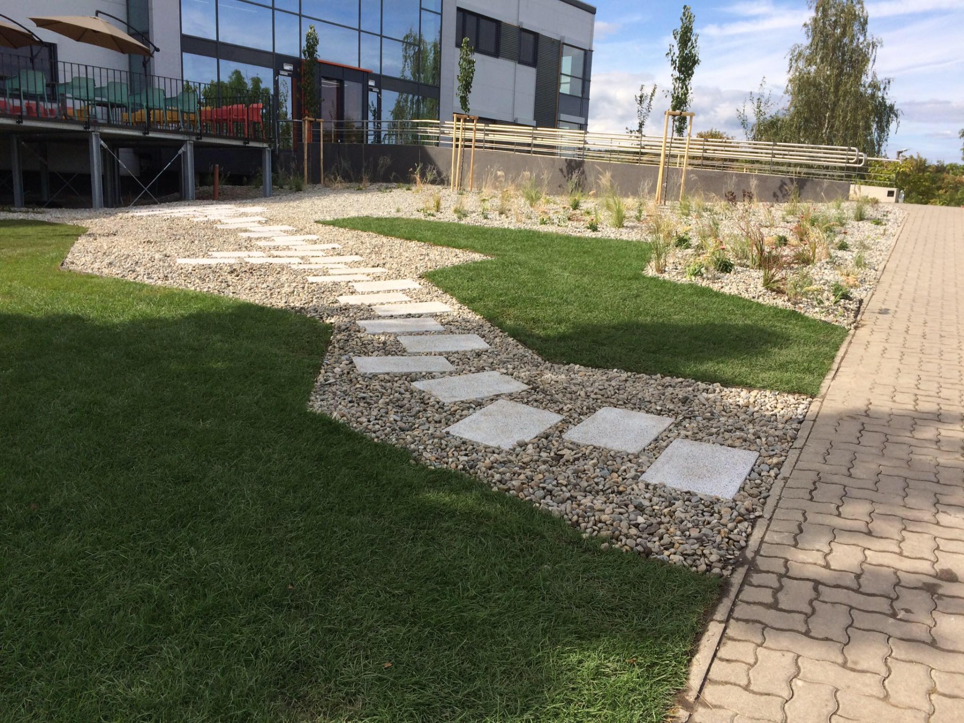 A Megbízóval közösen véglegesített kertépítészeti terv alapján vállaljuk a zöldfelület teljes körű kivitelezését, mely magában foglalja a terület előkészítését és a terep rendezéséhez szükséges gépi és kézi földmunkákat, a burkolatok és építmények kialakítását, a műtárgyak kihelyezését, és a növények beültetését egyaránt.
